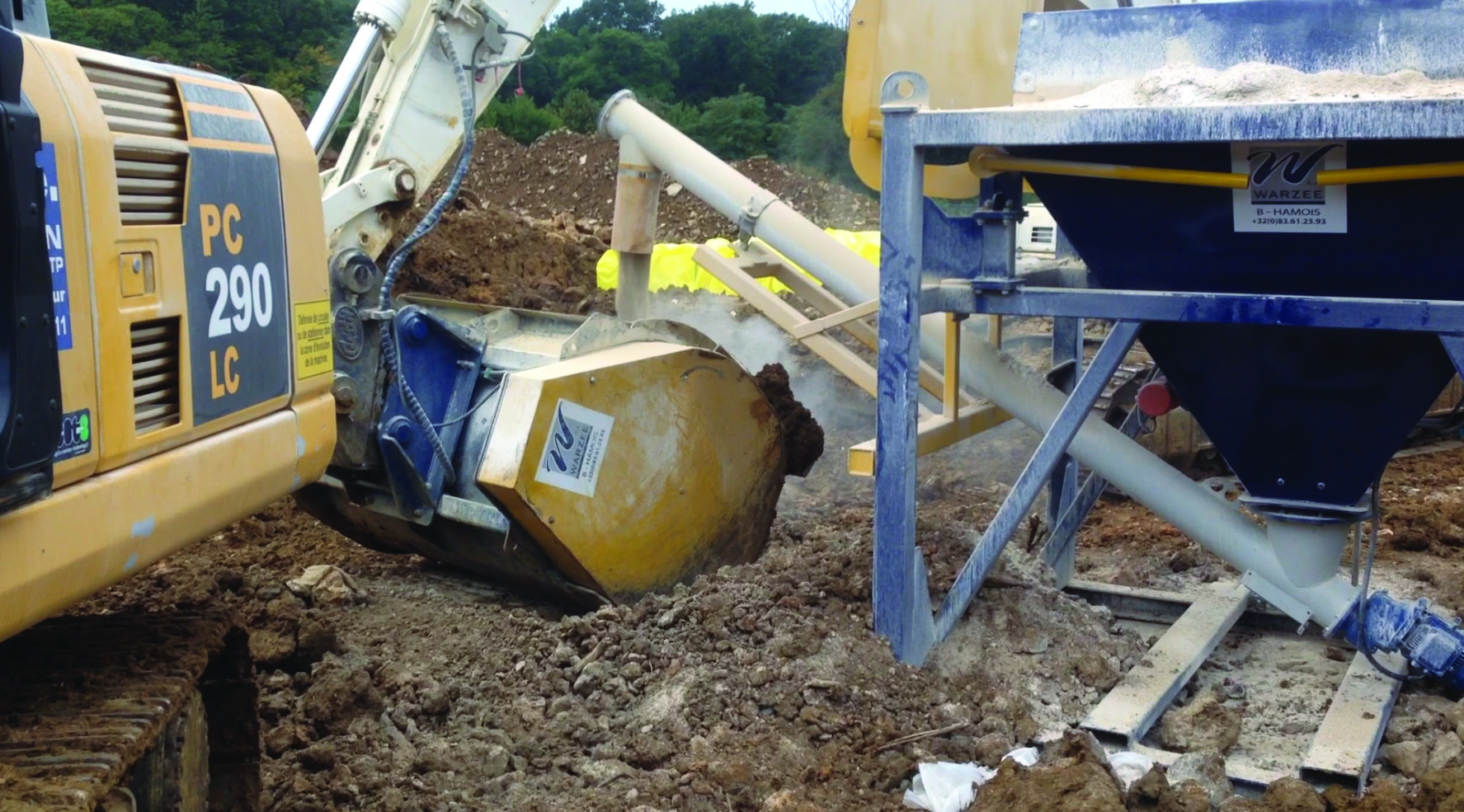 Le godet malaxeur à pales permet une incorporation rapide de la chaux : il suffit de quelques minutes pour que le mélange terre-chaux soit homogène.