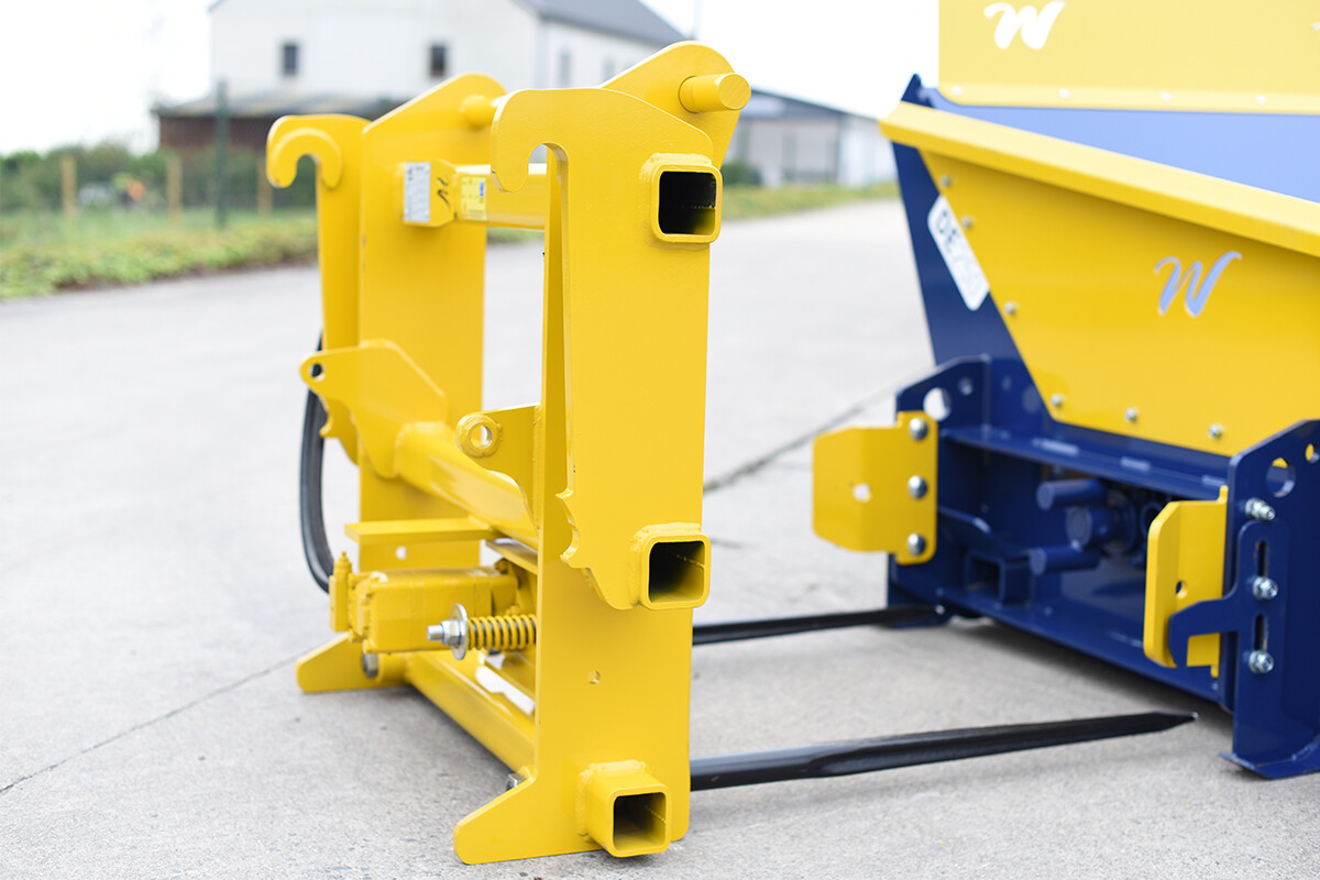 Un troisième côté d’accrochage peut être ajouté à la machine. Grâce à cette option, il est possible de distribuer et pailler de face, en plus des deux côtés habituels.