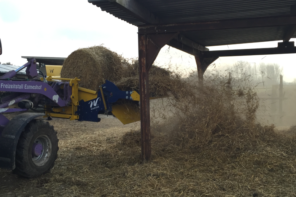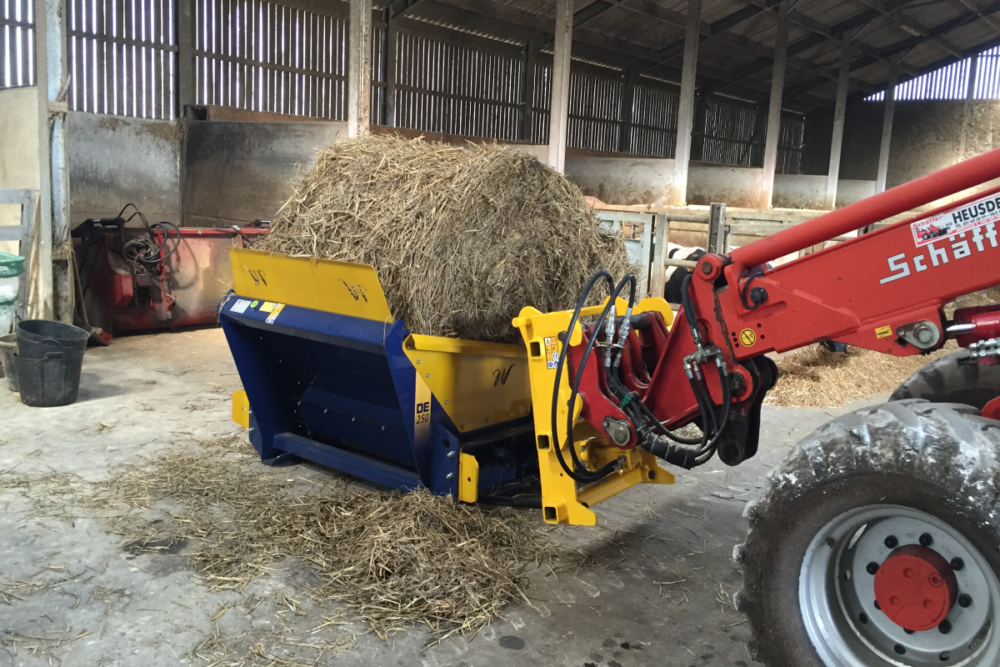 Simple et robuste, la dérouleuse Warzée DE250 distribue rapidement des balles rondes de foin et d’enrubanné jusqu’à 160 cm et 800 kg. Composée d’un tablier pique-bottes et d’une caisse de distribution compacte, cette distributrice s’adapte aussi bien sur un chargeur frontal ou bras télescopique que sur un relevage 3 points. Équipée d’un kit paillage (option), la machine peut également pailler des ballots ronds de paille.