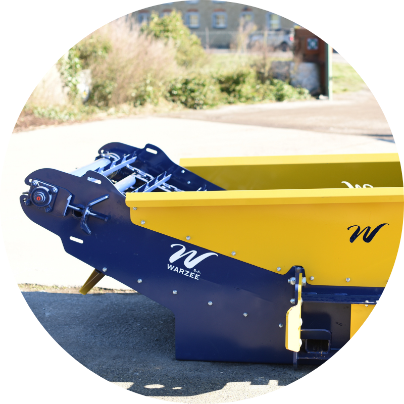 Un second côté permet de distribuer à gauche et à droite. L’accrochage automatique permet de passer d’un côté à l’autre facilement, sans descendre du chargeur.