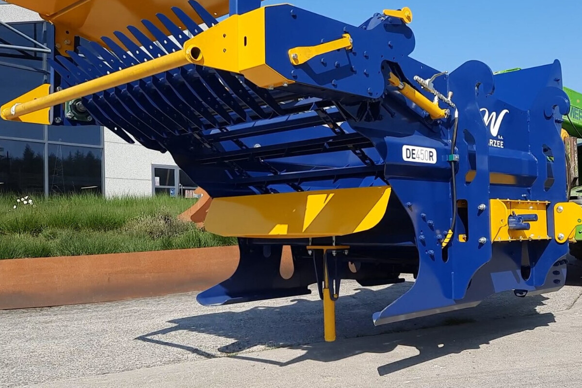 La dérouleuse-pailleuse DE450RPM est composée d’un tablier mécanique et d’une caisse de distribution haute. Elle distribue des balles rondes de foin et d’enrubanné jusqu’à 1200 kg. La machine peut également pailler des bottes rondes de paille.