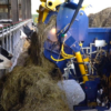 Une fois le rotor relevé, la machine déroule des balles rondes de foin ou d’enrubanné.