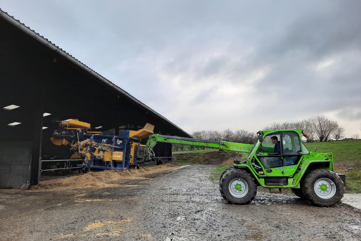La distributrice pailleuse s’adapte sur n’importe quel télescopique (Merlo, Manitou, JCB, New Holland, Dieci, Massey Ferguson, etc.).