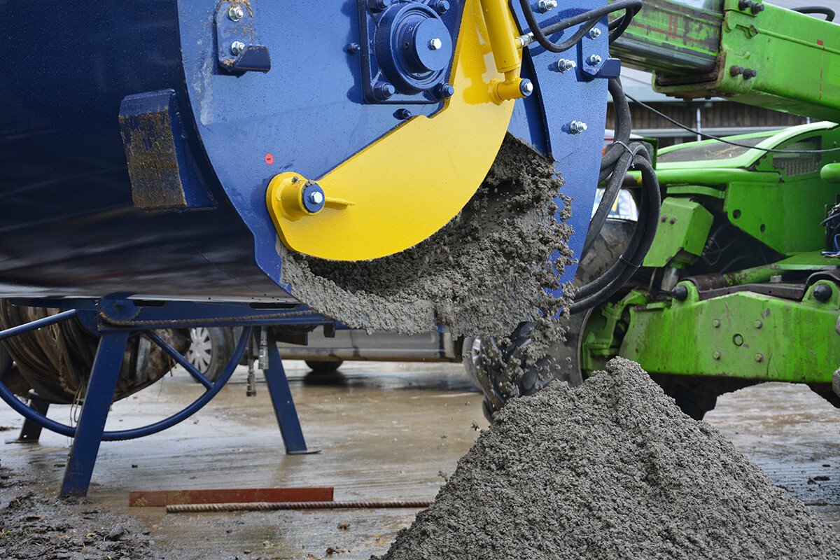 Outre la vidange par basculement, le godet malaxeur peut également être équipé d’une vidange ventrale ou latérale.