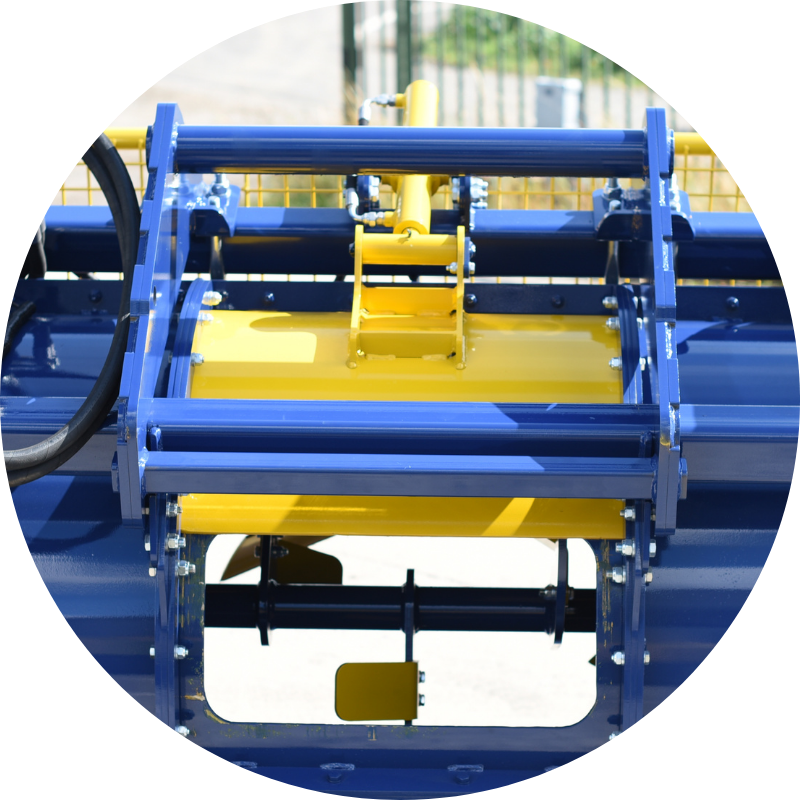 L’ouverture latérale se trouve sur le flanc du godet mélangeur. Commandée par électrovanne, la trappe permet de verser le mélange avec précision dans des zones précises.