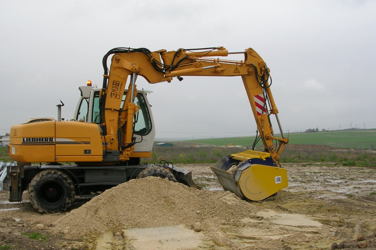 Les godets malaxeurs Warzée BB1510 sont adaptables sur de nombreux types d’engins (chargeuses ou pelles).